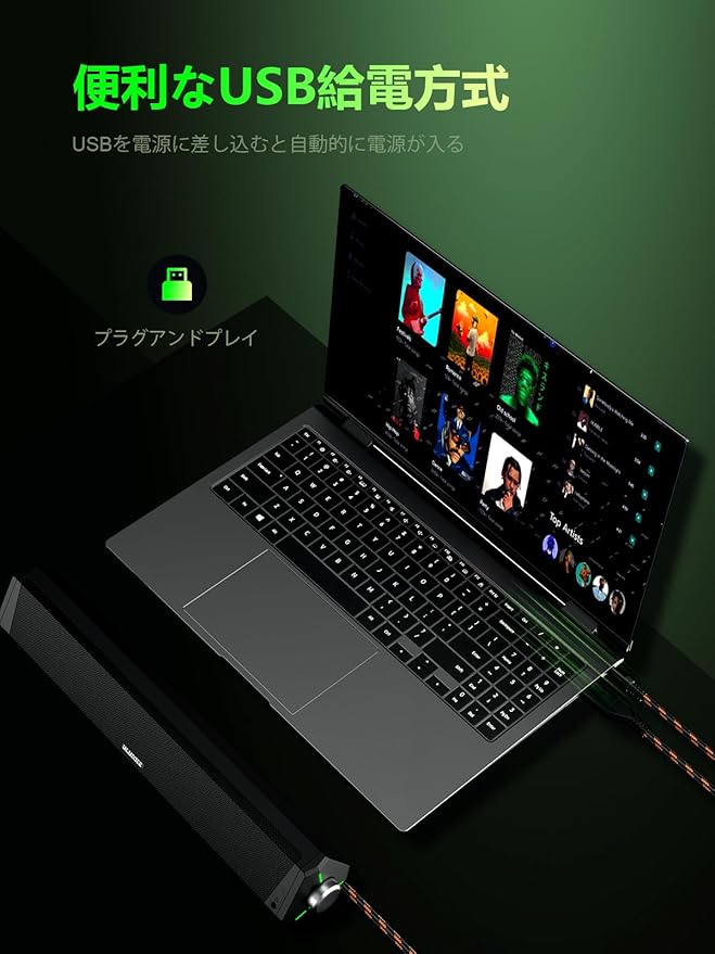 Bluedee PCスピーカー サウンドバー Bluetooth & AUX接続 10W ステレオ 大音量&豊かな低音 ラップトップ、タブレット、スマートフォンに対応、USB給電式のパソコンスピーカー
