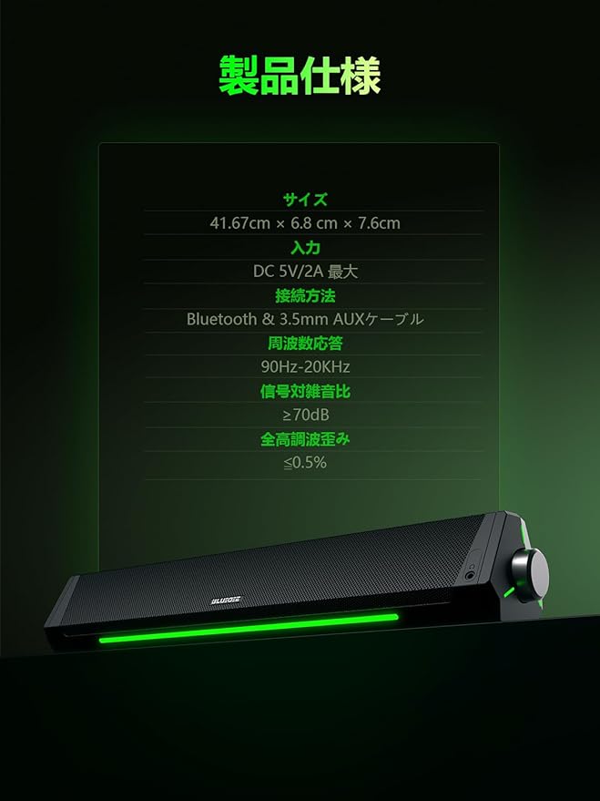 ✅【コンパクトなデザイン】スリムなデザインのBluedeeパソコンスピーカーは、モニターの下にすっきりと収まり、デスクスペースをほとんど取らずに済みます。サイズは約41.6 cm(幅) x 6.6 cm(奥行き) x 6.6 cm(高さ)です。