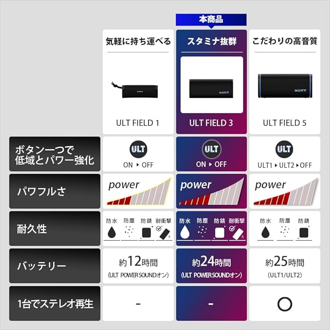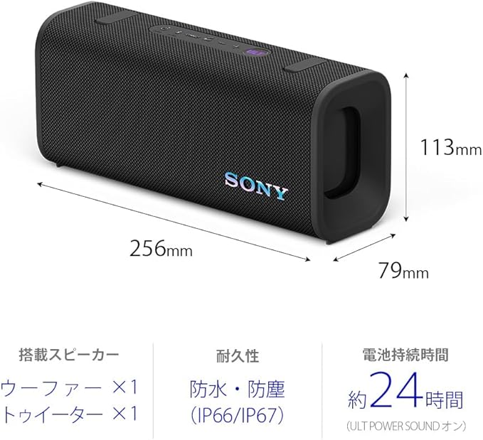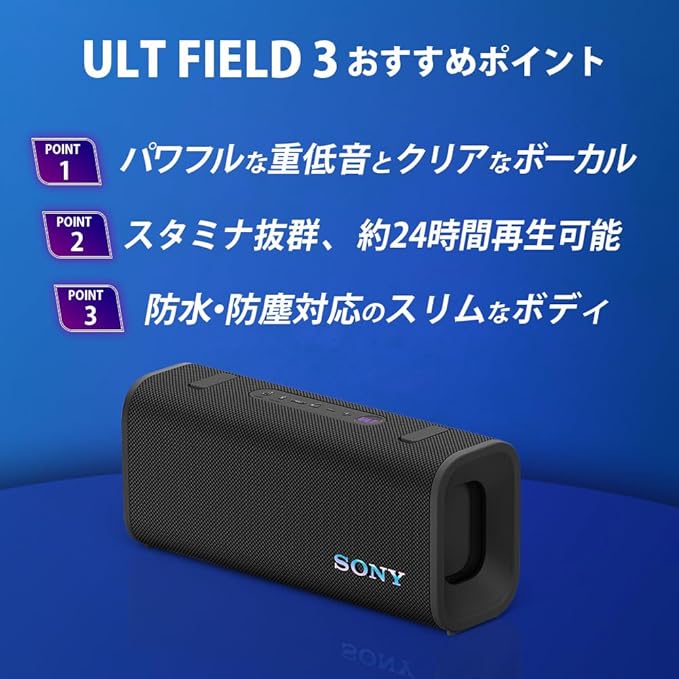 ソニー(SONY) ULT FIELD 3 Bluetoothスピーカー パワフル重低音 クリアなボーカル ロングバッテリー24時間 ショルダーストラップ 防水 防塵 SRS-ULT30 BC ブラック