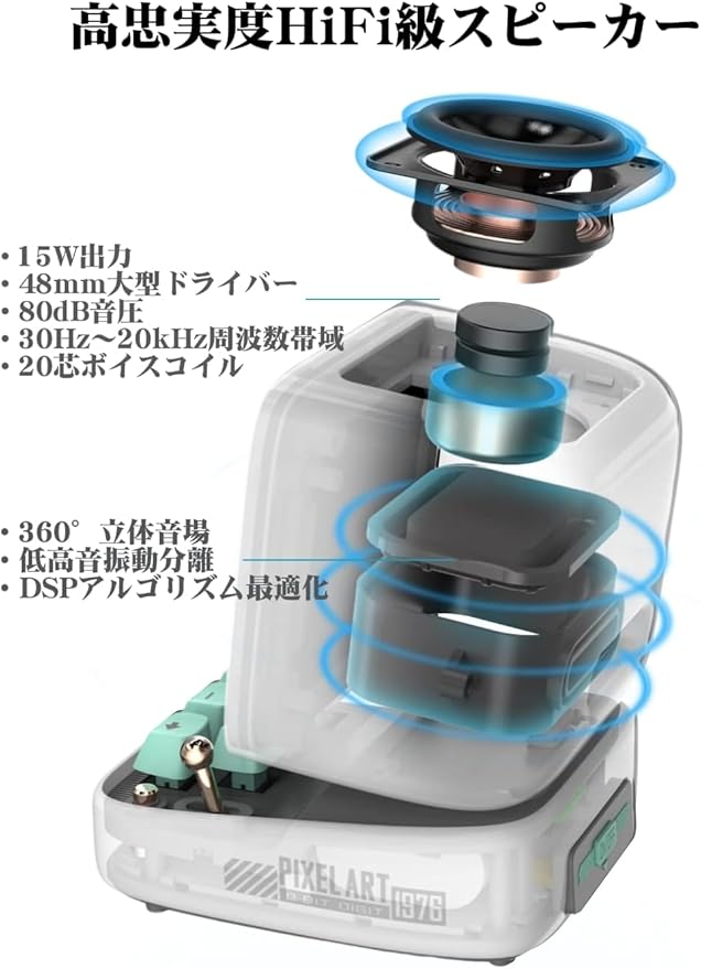 【Divoomならではの没入型サウンド体験】15W DSP搭載Bluetoothスピーカーが、低音強化&360 サウンドでどこでも臨場感あふれる音楽空間を創出。Bluetooth 5.0/SDカード/PC接続に対応し、あらゆるデバイスとシームレスに連携。