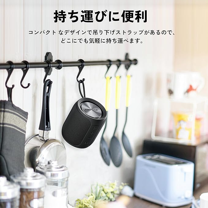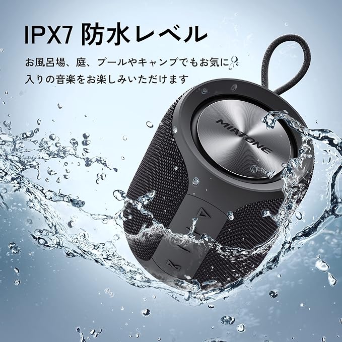 【IPX7規格の防水設計&コンパクト】優れた防水素材により、IPX7防水性能を実現。雨に濡れたり、飲み物をこぼしたり、完全に水没させても問題ありません。お風呂やキッチン、プール、ビーチなどで最適です。324gの軽量かつコンパクトサイズで持ち運びに便利。ストラップ付きで、自転車や山登り、キャンプなどのアウトドア活動にも大活躍します。