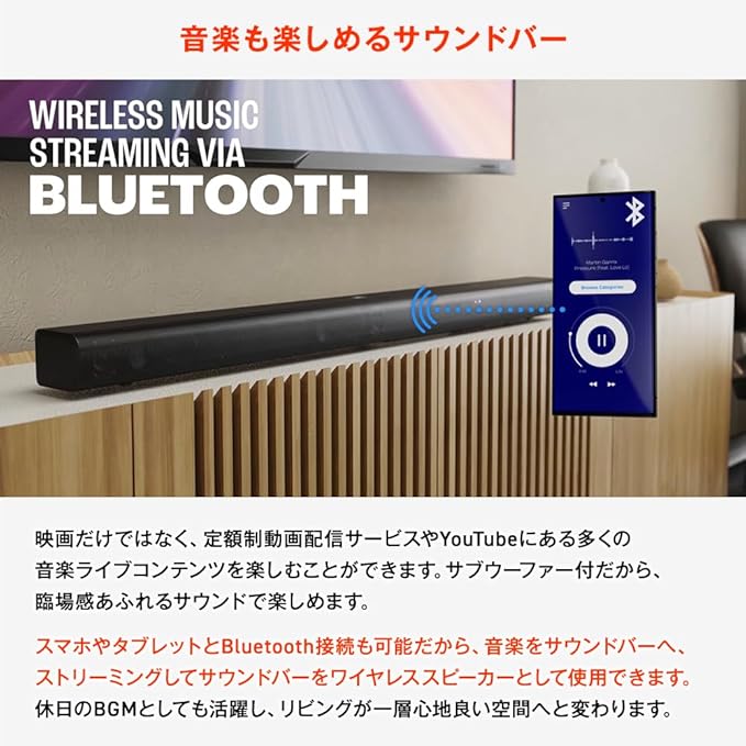 Bluetoothも搭載しており、スマートフォンやタブレットからワイヤレスで音楽ストリーミングも可能。