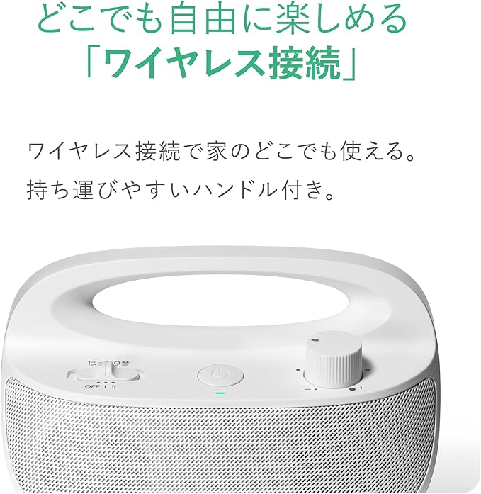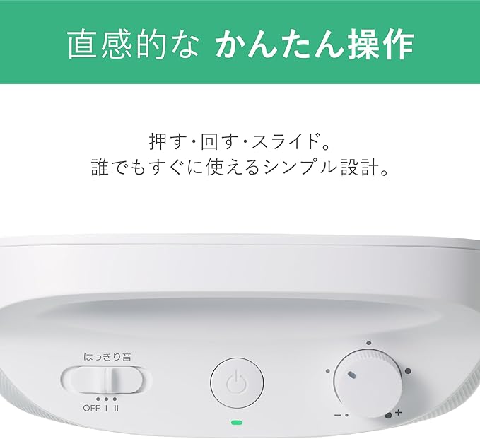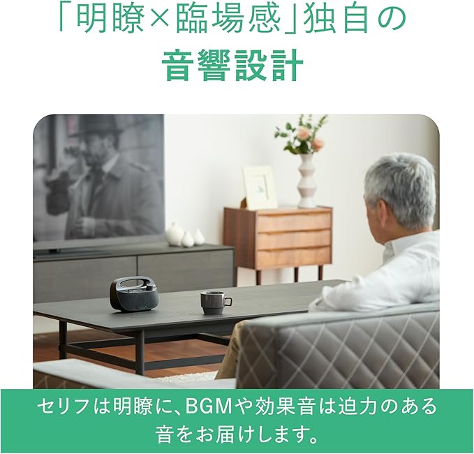 【誰でも、かんたん操作】 スピーカーの操作は、電源ボタン/ボリュームノブ/はっきり音スイッチとシンプルな設計。電源を「入れる」、音量を「調整する」、はっきり音を「設定する」の3ステップで、迷うことなく直感的に使えます。