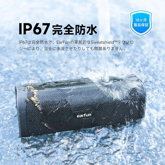 【Bluetooth5.0対応】通信範囲、データ転送量、転送速度、省エネ性能等、従来のバージョンに比べて数々の大きな技術的進歩が含まれる、Bluetooth5.0に対応しています。【IP67防水】EarFunの革新的なSweatshieldテクノロジーに より、完全に水没させたりしても問題ありません。IP67レベルの防水防塵なので、水深1mの水中に30分浸しても影響ありません。もちろん、海やプールなどのアウトドア、お風呂場での利用も心配ありません。水がある環境で、どこでも音楽を楽しめます。