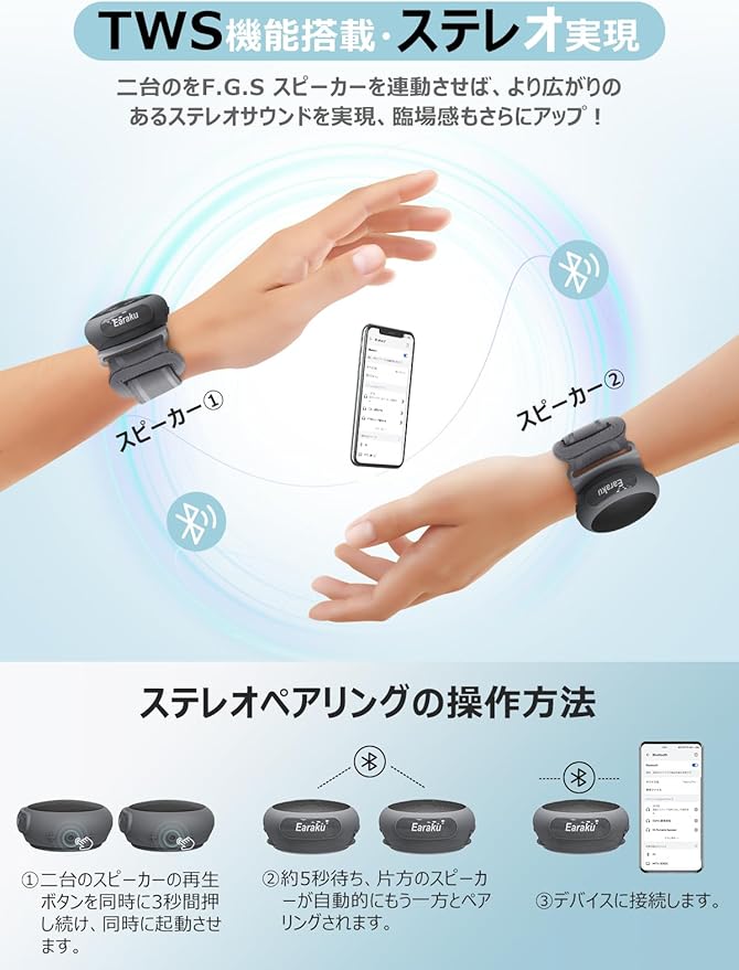 ❤【最先端のBluetooth5.3・TWS機能対応】このEaraku (イアラク) BluetoothスピーカーはBluetooth5.3チープを採用、従来のBluetooth5.0チップより高速なBluetooth接続とより安定的な接続範囲を提供します。低遅延でストレスのない体験を提供し、高音質かつ安定した音声伝送を実現します。スマホ(iPhone & Android)、iPadや他のすべてのBluetoothデバイスに簡単に接続できます。また、TWS機能にも対応しております。二台のをF.G.S スピーカーを連動させば、より広がりのあるステレオサウンドを実現、臨場感あふれるサウンドをワイヤレスで楽しめます。さらに、内蔵マイクでハンズフリー通話にも対応します。