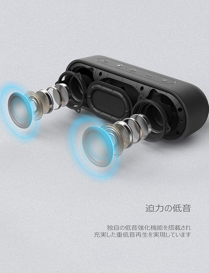 【大音量&高音質】パワフルのドライバーを2つ搭載し、最大音量にしても音が割れたりすることもなく、低音から高音までバランスよく鳴り響きます。また、Tribit XSound Goは低音を強化する先端技術を採用しており、音楽ホールような強い臨場感を体感できます。より原音に近いサウンド、室内だけではなく室外でも満足度の高い音が聞き取れます。