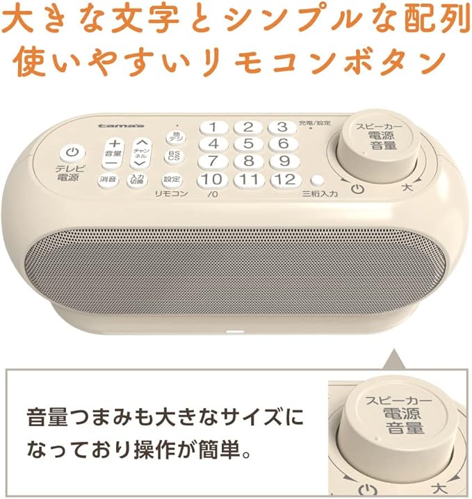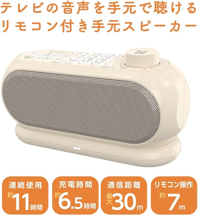 多摩電子工業手元 スピーカー テレビの音が大きく聞こえる リモコン付き 無線 ワイヤレス 小型 耳元スピーカー TSPK001GY