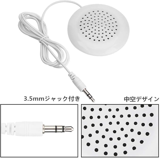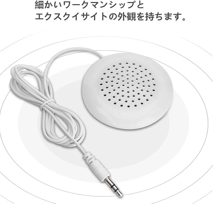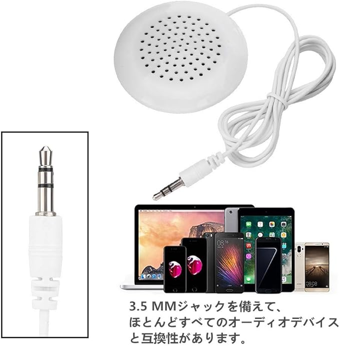 まくら用ボリューム スピーカー ミニ有線スピーカー 枕用スピーカー ポータブル 3.5mmジャック付き 軽量 コンパクト MP3/MP4/iPod Touch/ほとんどのオーディオデバイスと互換でき ホワイト