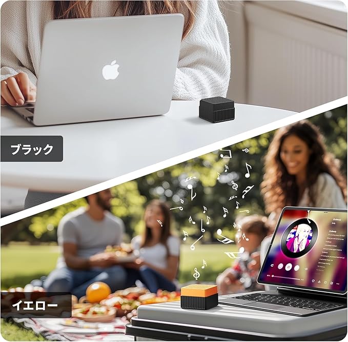 【業界初!手のひらサイズのスピーカー】軽くてコンパクトで、持ち運びに便利なスピーカーを探している方はいませんかそれなら、このポータブルスピーカーが最適な選択です!サイズは 50x50x38mm で、手のひらに収まるほどコンパクトです。ポケットやバッグに簡単に入れられ、ほとんど場所を取りません。重量はわずか 115g で、スマートフォンよりも軽く、手に持ってもほとんど負担を感じません。本当にストレスフリーな持ち運びを実現しています。さらに、便利なストラップが付属しています。アウトドアや出張、旅行の際にバッグに掛けるだけで手が自由になり、どこでも好きな音楽を楽しむことができます。