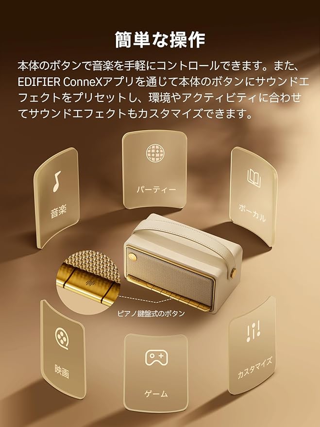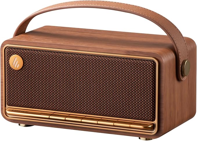 EDIFIER MP330 Bluetoothスピーカー ポータブル 小型 「VGP2025 SUMMER 金賞&コスパ大賞」ワイヤレス 有線 ハイレゾ 19時間音楽再生 充電式 Bluetooth6.0/USB-C/SDカード/アプリ対応 MDF木製 レトロ ハンドル付き ブラウン