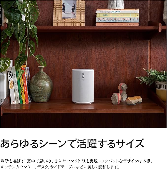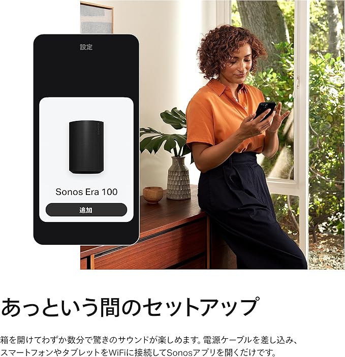 【サイズはコンパクト、サウンドはパワフル】最新の音響技術やテクノロジーを採用したSonosEra100はスリムでモダンなデザイン。本棚、キッチンカウンター、デスク、ナイトテーブルのシックなデザイン・アクセントとしても際立ちます。