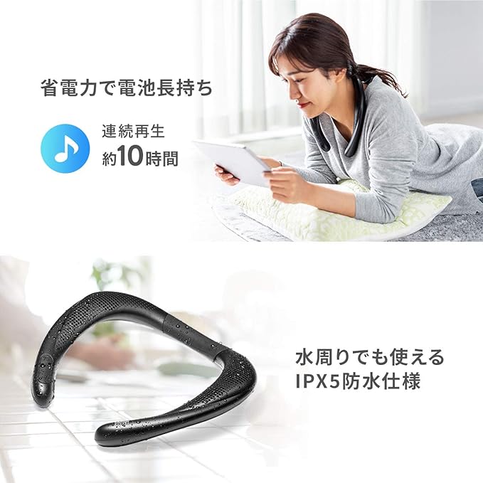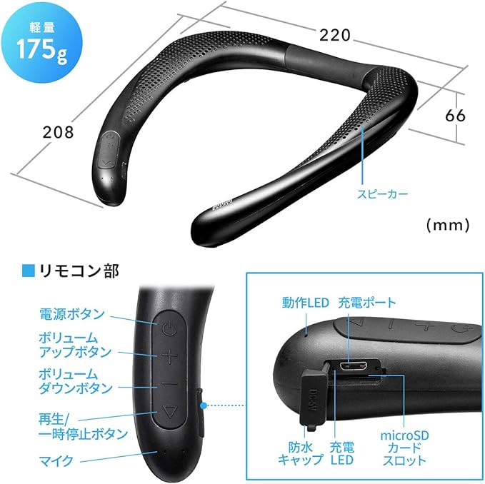 サンワダイレクト ネックスピーカー Bluetooth 防水 軽量 175g 連続10時間再生 通話対応 microSD再生対応 400-SP085