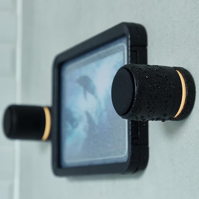 【安心の防水・防塵性能】おふろやキッチン、アウトドアでも安心してお楽しみいただけるよう、IP67相当の防塵・防水性能を実現しました。※JIS保護等級 IP67相当:水深1mの真水に30分間浸しても有害な影響を受けません。(防浸形)※スピーカーを設置する面の水滴を拭き取ってからご使用ください。