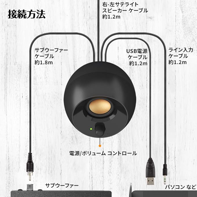 【ご案内】さらに低音や音量が欲しい場合は「5V/2A」対応のUSB電源アダプタを使用すれば総合8W RMSまでパワーが向上、また再生音にノイズが聞こえる場合は外部からノイズが来ている場合があります。USB端子を変える / ラインケーブルを他の機器につないでみる / 各ケーブルの接続が緩くないか等でノイズが消えるかご確認ください