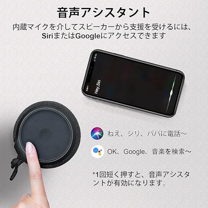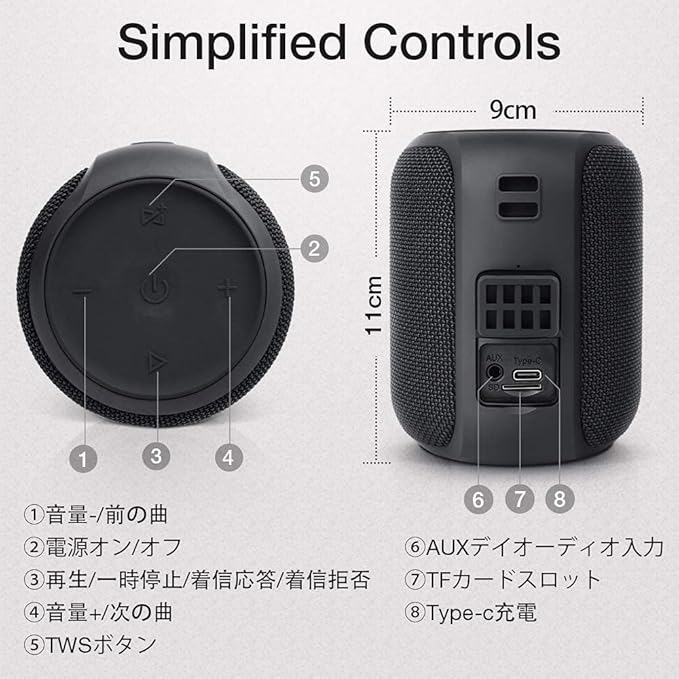 TWS対応&便利機能:2台スピーカーTWS機能でペアリング可能、左右チャネルになり、ステレオサウンドを演出!付属のストラップを使えば、スピーカー使い方がさらに広がります。マルチウェイストラップで、スピーカーグリルを上向きにも下向きにもかけられるので、カバンやお風呂のラックなどに吊るしたときも音楽を好きな方向に向けて鳴らすことができます。また、スマホが無くても本体操作ができます。Bluetoothスピーカー本体の操作ボタンで再生/一時停止、曲送り/曲の頭出しが可能。お風呂などでスマホが近くになくても操作ができます。