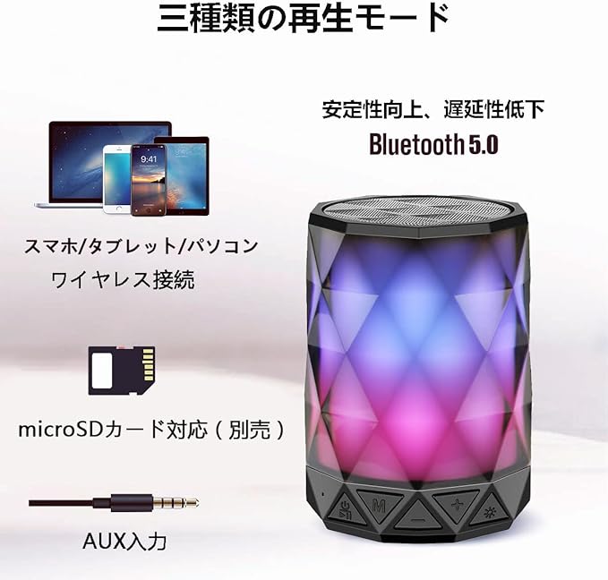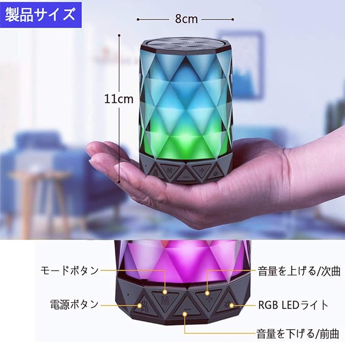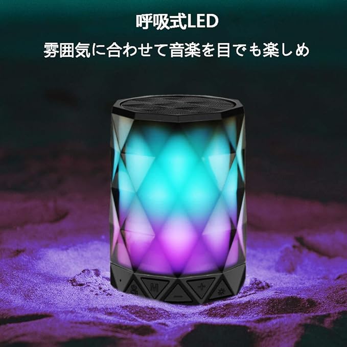 2)【呼吸式LEDライト】ダイヤモンド設計でシンプルかつ高級感あり、触り心地良いです。多彩のRGB自動変更LEDライトを搭載し、雰囲気に合わせて臨場感あふれるリズムを作り上げます。聴覚だけではなく、音楽を視覚的に楽しめます。それに、就寝する前に薄暗いロマンチックなLEDライトを合わせて軽音楽を聞きながら、気持ちを落ち着かせられます。一日の疲れを取り除いて心地よい眠りに就くことができます。