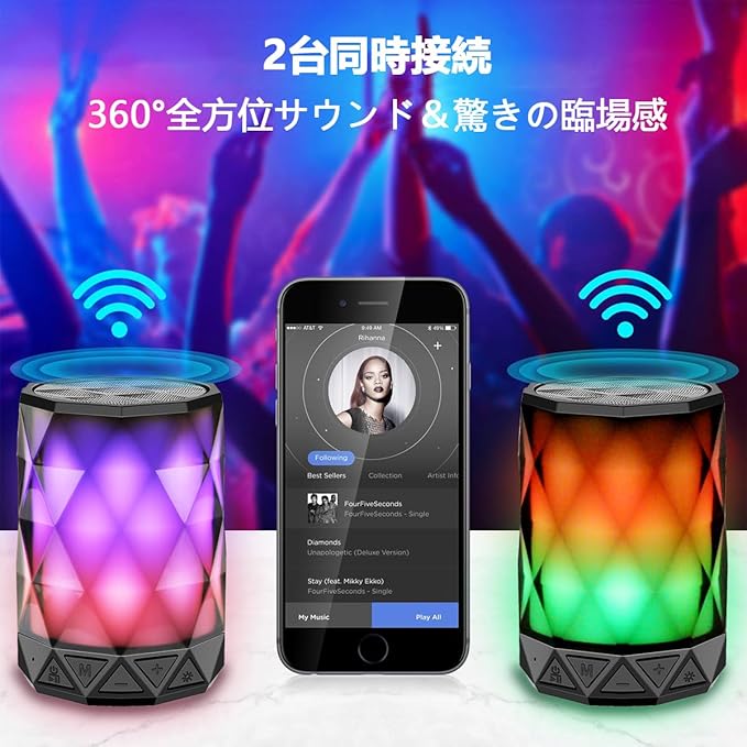 1)【360度全方位サウンド】LFS Bluetoothスピーカーは印象的な大音量を持ち、最高音量でも歪みのないクリアなサウンドと優れた中域音を生み出します。無指向性で音が広がるため、通常の箱形と比較しスピーカーの横や後ろにいても音がこもることはありません。低音を増強しつつ中高音もクリアでバランスが良く迫力のあるステレオサウンドを再現します。まるでその場で演奏された透き通った音ような、かつてない臨場感を楽しめます。