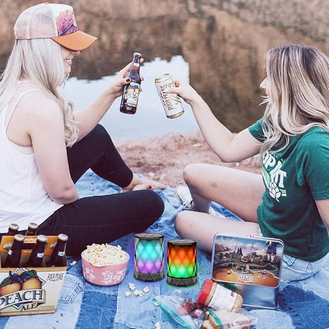 4)【小型でコンパクト】気軽に持ち運びに便利である上に、簡単にパックに収まるワイヤレススピーカーを開発するのが弊社の理念です。このコンパクトスピーカーは小型で軽量(サイズ:8*8*11cm/重量実測値:268g)のため旅行に最適です。デスクやトイレをはじめ屋外等省スペースなところに設置して大人数でも音楽を楽しむことができます。また、シックでシンプルなデザインでキッチンや寝室、自分の部屋でBGMを掛け雰囲気作りにも使えます。外出先での屋外の使用などでも便利です。