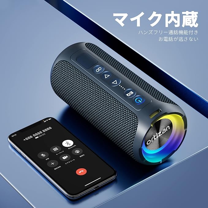Ortizan スピーカー bluetooth ワイヤレス 防水 IPX7 40W ブルートゥース 30時間 連続再生 マイク 内蔵 RGB LEDライト付き pc パソコン テレビ 携帯 車載 ハンズフリー通話機能 TWS対応 sdカード TFカード/AUX 接続 入力対応