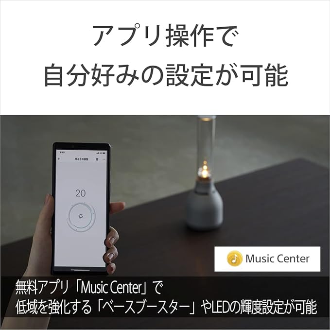 ・Music Centerアプリ連帯 音質変更、光の輝度設定、スリープタイマー、ライティングモード選択など アプリ連携で多彩な使い方