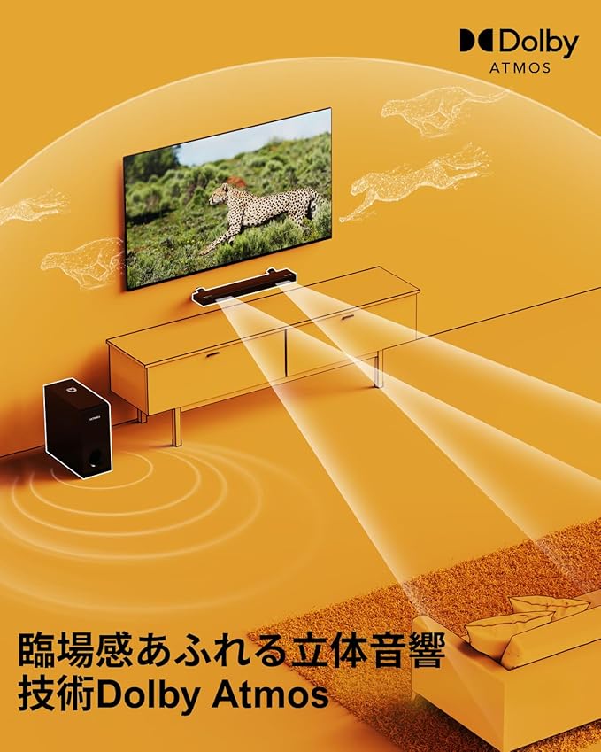 【Dolby Atmos初体験】ULTIME Nova S50は、Dolby Atmos立体音響技術を融合し、プレミアムな多次元サウンド体験を実現するホームシネマ向けの素晴らしいサウンドバーです。遠くから近くまで、よりリアリティな効果を生み出し、音の細部を明らかにして、視聴体験を向上させます。