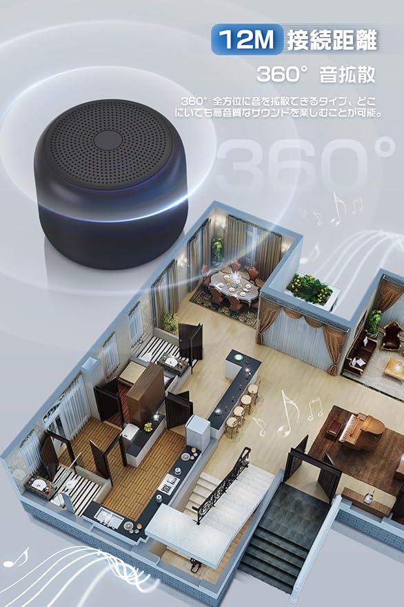 【360 全方位サウンド.より良き音質をお届け】このbluetoothスピーカーは360 全方位に音を拡散できるタイプです。家でもアウトドアでも音割れなく、バランスの良い音をお楽しめます。ミニスピーカーは豊かで豊かなサウンドを生み出し、高性能なドライバーとサブウーファーを動かし、お部屋を音楽で満たします。マグカップほどの小さいサイズながら、心躍るサウンドを響かせます。