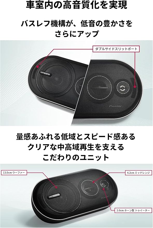 響き渡る豊かな低域とクリアな中高域の再生を両立し、車室内の高音質化を実現