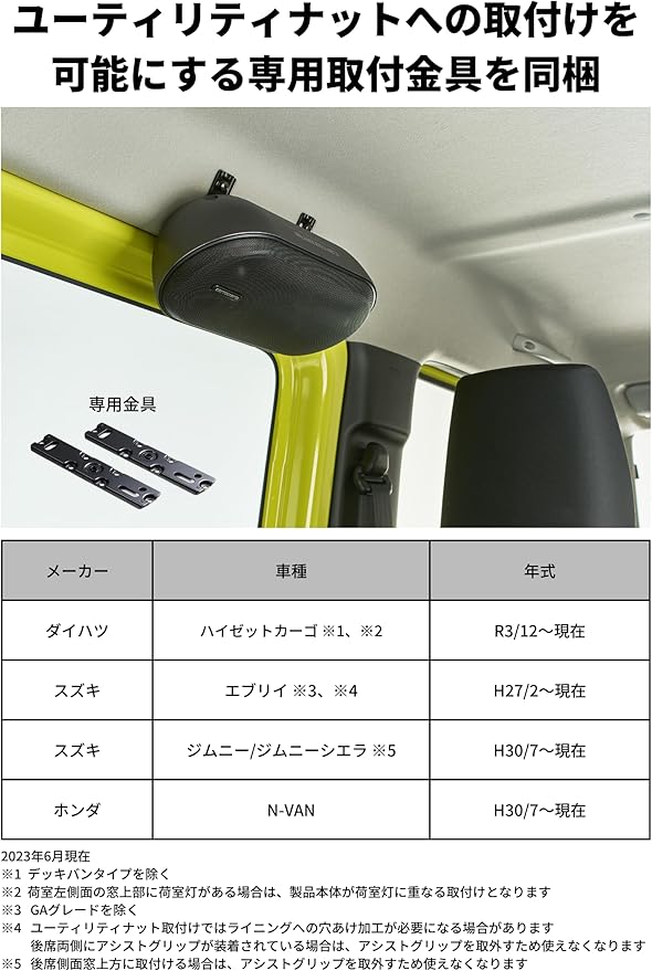 ユーティリティナット取付け対象車種(2023年6月現在)