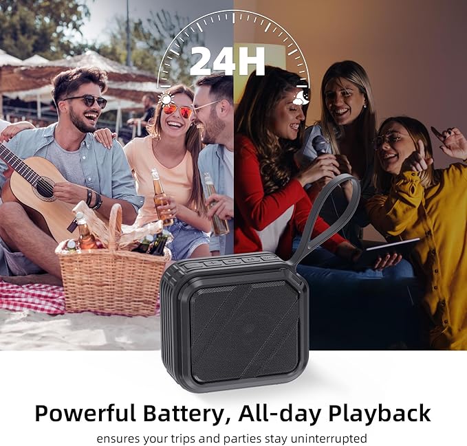 【長時間再生でアウトドアや旅行に最適】:最大24時間の連続再生が可能なバッテリーを搭載しており、1回の充電で長時間の音楽再生が可能です。キャンプや遠足、旅行などのアウトドアシーンでも安心して使用でき、途中でバッテリーが切れる心配がありません。音楽を楽しみ続けられます。