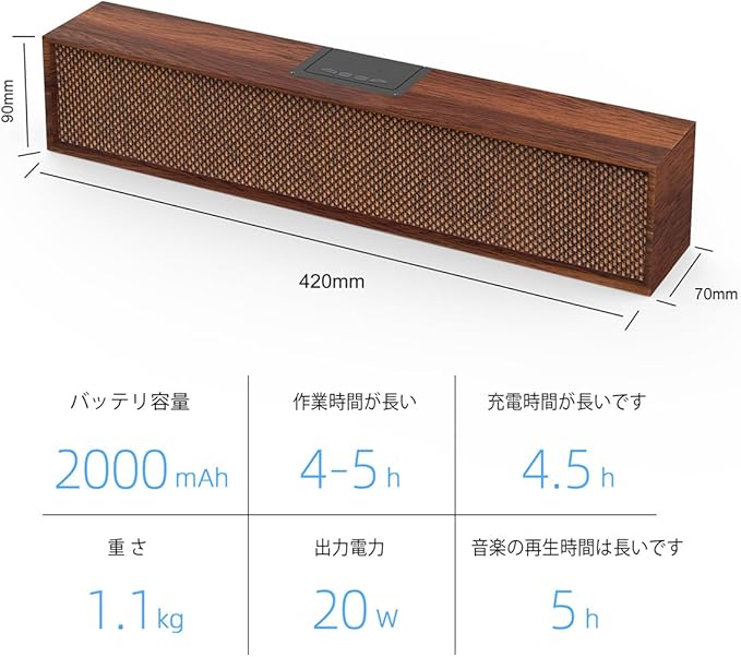 【当社が提供するもの】Smalody Bluetoothスピーカー*1、AUXケーブル*1、充電ケーブル*1、ユーザーマニュアル*1、24時間フレンドリーなカスタマーサービス。 全体的な木箱+豪華な巻き取り生地のデザインがこのBluetoothスピーカーをユニークにしており、愛する人への素晴らしい贈り物になるでしょう。