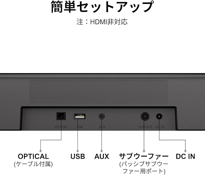 【テレビ用5.1chサラウンド音声システム】: この5.1chサウンドバーには、クリアなダイアログのための3つのメインチャンネルとバーチャルサラウンド音場のための2つのサラウンド音声スピーカーが含まれています。SurroundX技術は、99.99%の細部精度で正確なオーディオを提供します。AIにより、臨場感あふれるサウンドが最適化され、ホームシアター体験を向上されます。