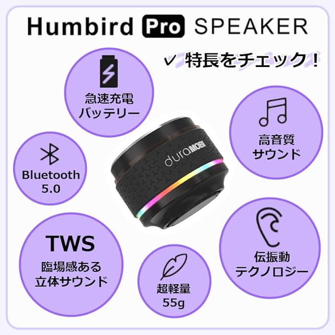 Humbird Proスピーカー どこでもスピーカー ワイヤレス 車 音楽プレーヤー 小型 貼り付け (ブラック)