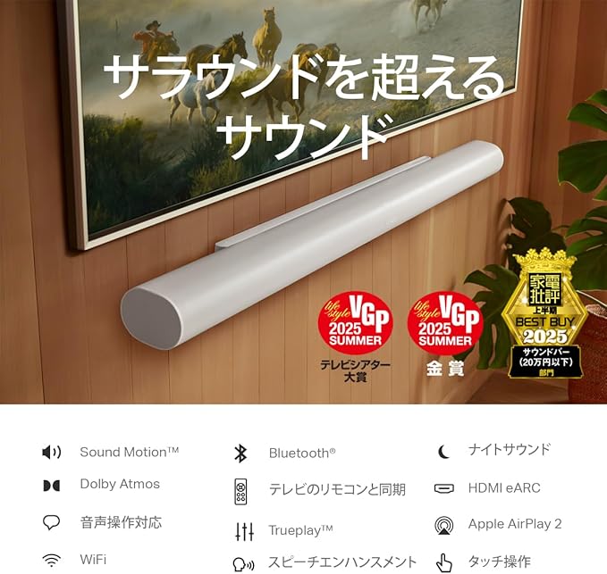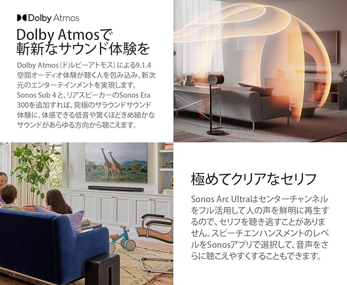 Sonos Arc Ultra 【家電批評2025年4月号サウンドバー(20万以下) BEST BUY 受賞】アークウルトラ プレミアムサウンドバー Sound Motion™テクノロジー AIスピーチエンハンスメント Dolby Atmos対応 9.1.4 サラウンド 空間オーディオ体験 Amazon Alexa Apple Air Play 2, Bluetooth5.3 対応 ブラック