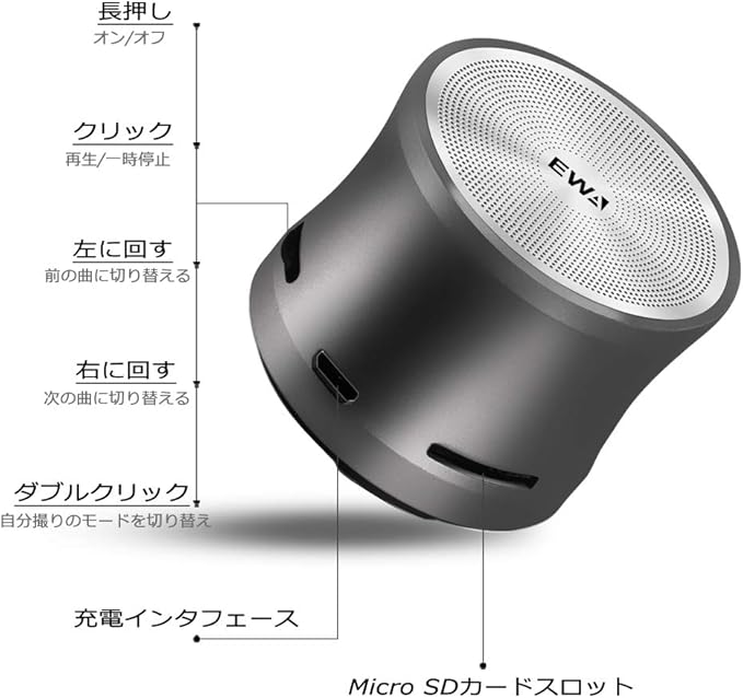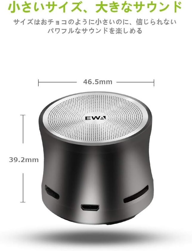 EWA Bluetoothスピーカー 超コンパクト設計 軽量化 自撮り MicroSDカード対応 金属製ボディワイヤレスA109mini グレー