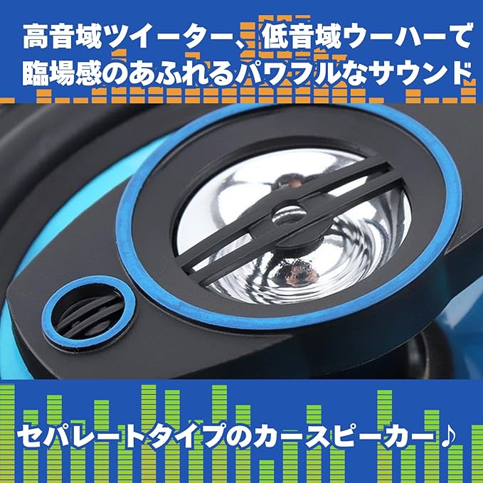 高音域ツイーター、低音域ウーハーが臨場感のあるサウンドを再現してくれるセパレートタイプのカースピーカー♪