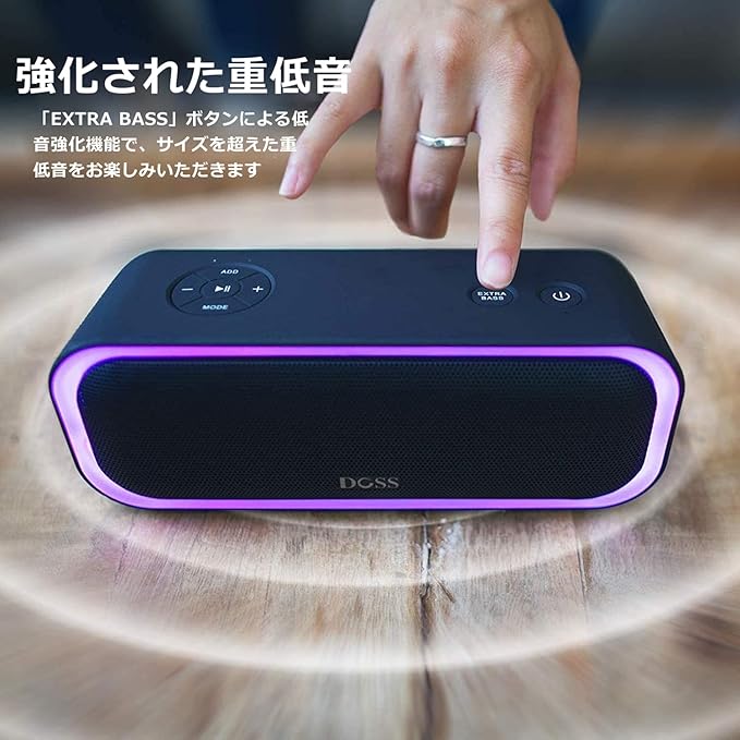 【高音質・EXTRA BASS重低音】DOSS SoundBox Pro ワイヤレススピーカーは、デュアルドライバと2つのパッシブラジエーターを搭載しており、バランスの取れた鮮明なサウンドを提供する同時に、迫力のある20Wのステレオサウンドを実現しています。DOSS独自の音質調節技術により、どんな大音量にしても音の歪みを最小限に抑え、クリアな音を流れます。また、「EXTRA BASS」ボタンを押すと、スピーカー内蔵の低音強化機能が働き、低音の量感を増幅し、豊かな音色と驚くほどの重低音をお楽しみいただけます。
