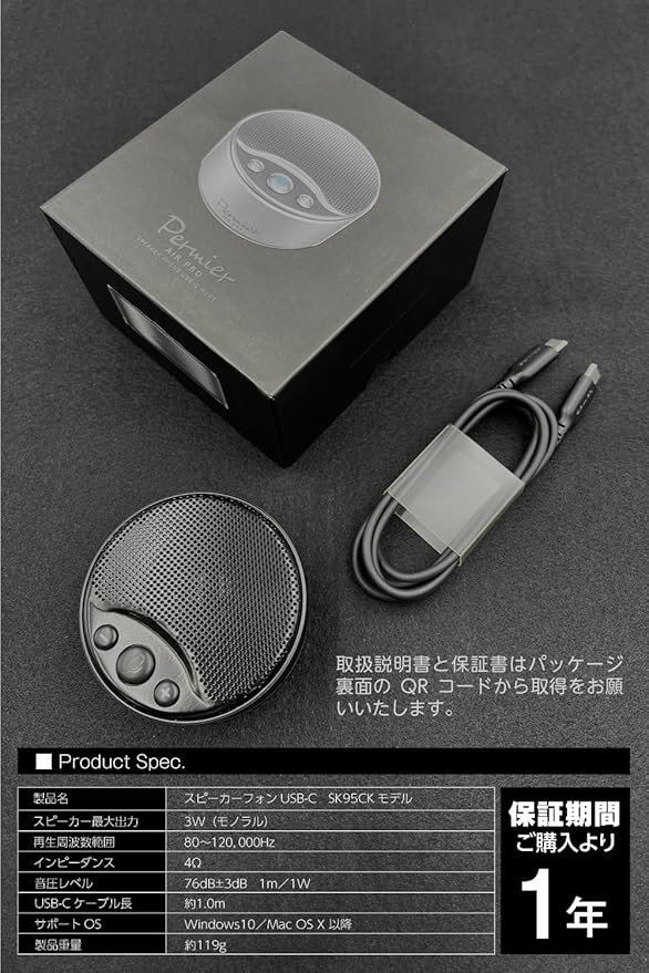 スピーカーフォン USB-Cケーブル付属 PR-SK95CK【ブラック】