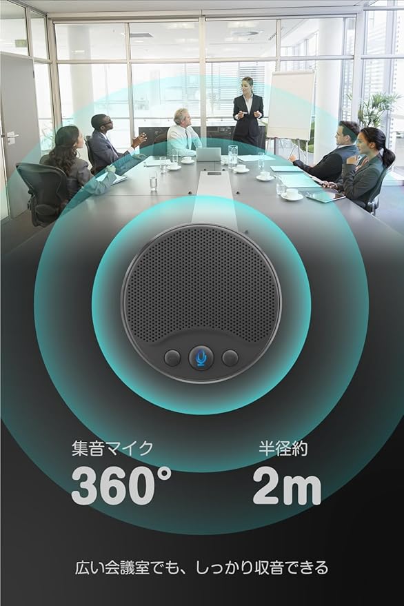 <マイク部> ■周波数特性:100〜5,000Hz ,000Hz ■指向性: 無指向性 ■集⾳範囲: 半径約2m程度/360度 ※使⽤状況により異なります