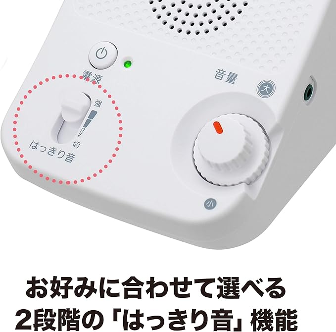 【 かんたん操作 】電源ボタン、ボリュームノブ、「はっきり音」スイッチのシンプルな操作設計。