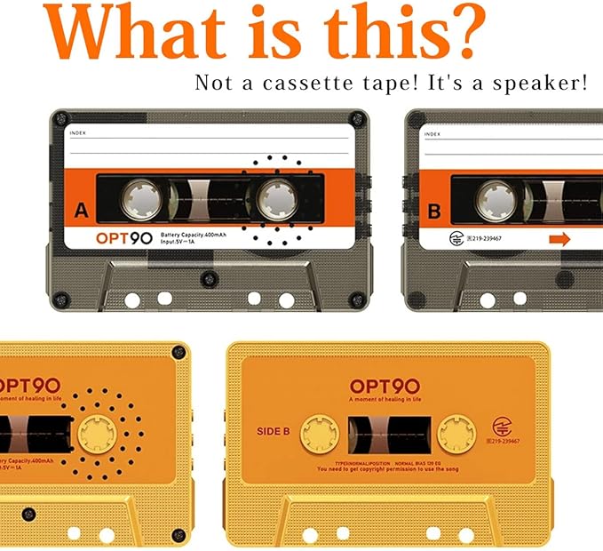 opt! Cassette Speaker オプト90 カセット スピーカー カセットテープ型 ポータブルスピーカー Bluetooth 5.3 microSDカード対応 TELEC認証取得済 レトロスピーカー ラジカセ ミックステープ (クリアブラック)