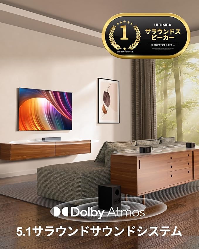 【Dolby Atmos対応の3Dサウンド】Dolby Atmosステレオテクノロジーを統合し、プレミアムな多次元サウンド体験を提供し、ホームシアターに最適です。遠くから近くまでよりリアルな効果を生み出し、音の細部を強調し、視聴体験を向上させます。 ※本製品はDTSには対応しておりません。