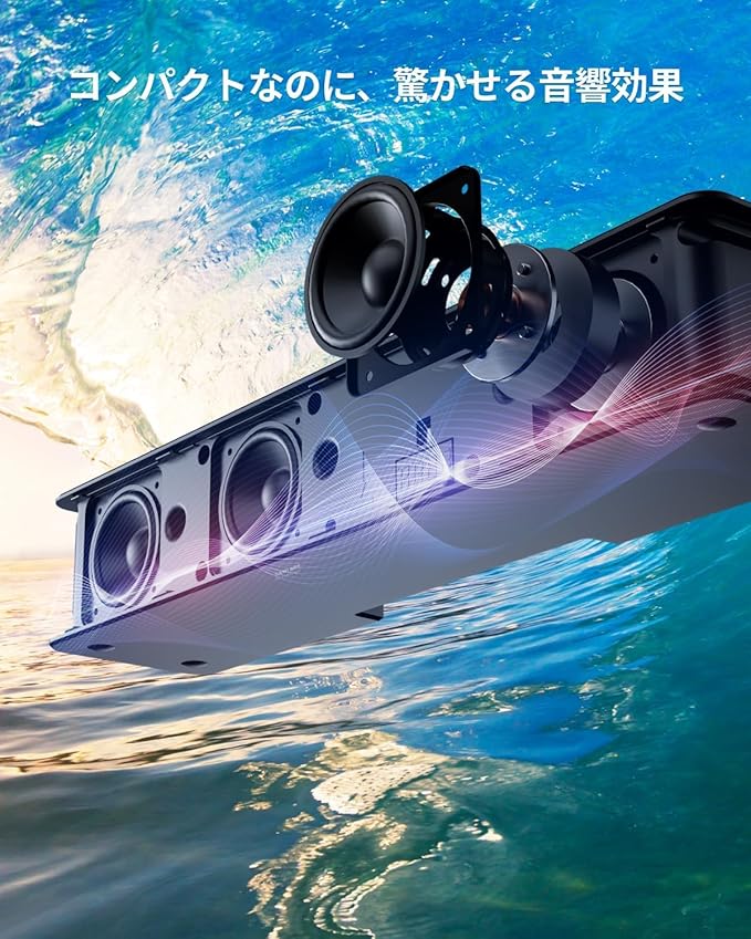 【臨場感あふれるサラウンドサウンド】アルゴリズムによりPCM 2.0を5.1サラウンド信号に変換し、合計120Wのパワーが周囲に流れるように広がります。高品質ネオジム鉄ボロン磁石も使用されており、スピーカーにクリアで独特のサラウンドサウンドを提供します。