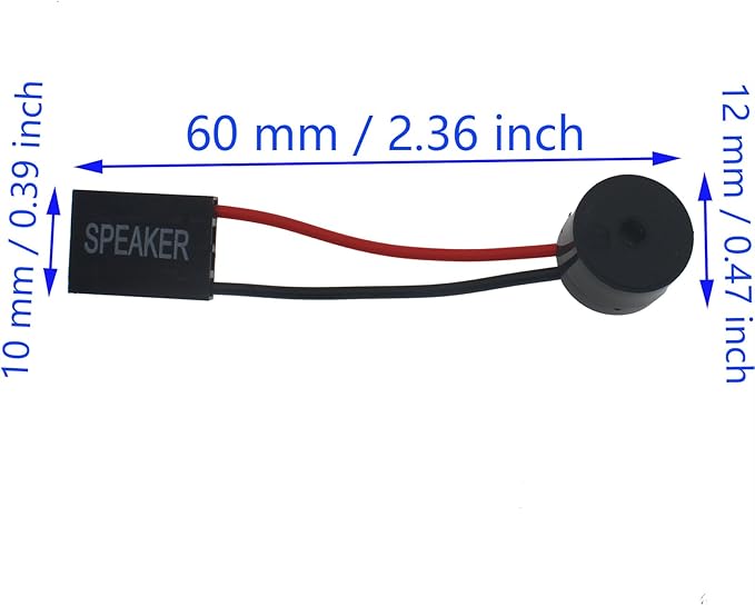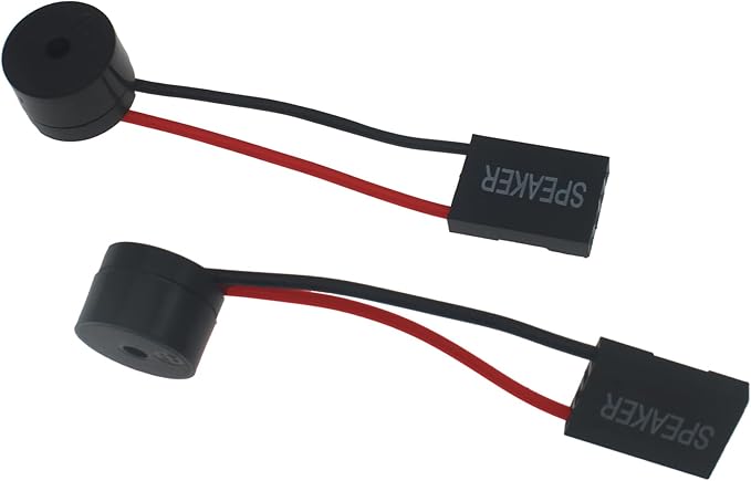 PCマザーボード用のブザーユニット (ビープ音用スピーカー) 、マザーボード、アラームシステムおよびその他の電子機器からのビープコードを取得するために使用されるスピーカーです。ブザーを搭載していないマザーボードで、起動音などを鳴らす事ができます。PCケースの内蔵スピーカーよりも小さな音量で鳴ります、静かな場所で使うPCに最適です。マザーボード上にSPEAKERピンがある事を、予めご確認ください。