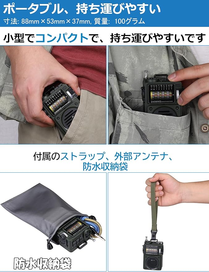 付属コンポーネント 1 x 1,000mAh リチウムバッテリー、1 x ストラップ, 1 x USB Type-c - 3.5mm ジャックケーブル、1 x 防水収納袋, 1 x USB-Type-C充電ケーブル、1 x 外部延長アンテナ, 1 x ZWS-700ポータブルラジオスピーカー本体, 1 x 日本語取り扱い説明書&保証書1 x 1,000mAh リチウムバッテリー、1 x ストラップ, 1 x USB Type-c - 3.5mm ジャックケー… 表示を増やす