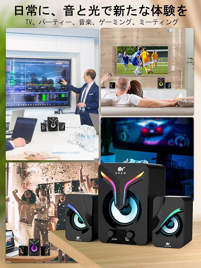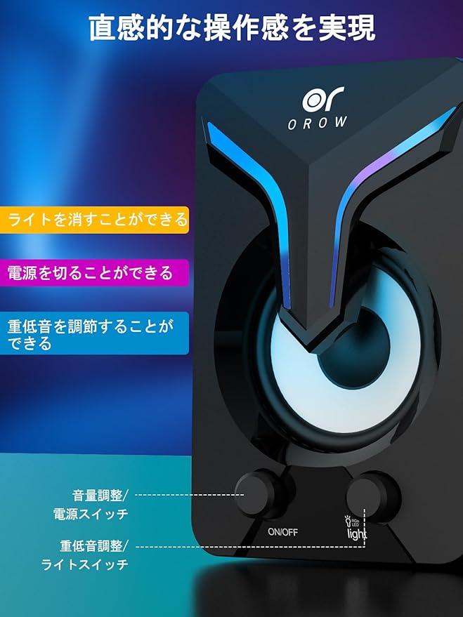 OROW PCスピーカー 2.1ch サブウーファー スピーカー RGBライト付き11W usb pc スピーカー pcモニタースピーカー テレビ パソコン用スピーカー ゲーミングスピーカー 重低音 3.5mm入力対応 (PCスピーカー 2.1ch)