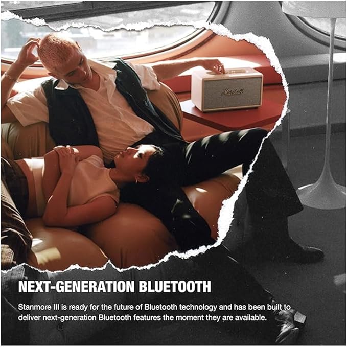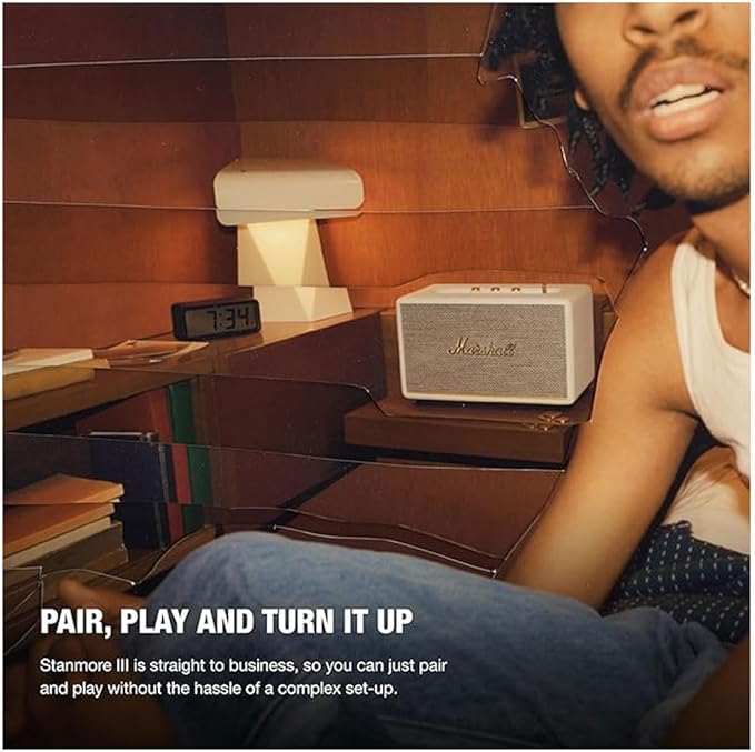 【部屋を満たす圧倒的なサウンド】Stanmore IIIは、より深い没入感体験ができるよう再設計され、前シリーズよりも音の流れが更に広くなっています。5インチのウーファーと 2つの 3/4インチのツイーターで構成され、最適な角度で設置されたツイーターと導波管のアップデートにより、より広がりのある圧倒的なサウンドを届けます。2ウェイのドライバーシステムは、歯切れの良い高音と、制御された鳴り響く低音を再生、バランスの取れたサウンドを体験してください。 新たに追加された配置補正は、アプリを使用して近くの反射面にサウンドを適応させる補正機能です。内蔵のダイナミックラウドネスは音のトーンバランスを調整し、すべての音量で音楽が鮮明に聞こえます。ミドルサイズにあたるStanmore IIIは、広がりのあるマーシャルサウンドを再現し、音楽に完全に没頭することができます。