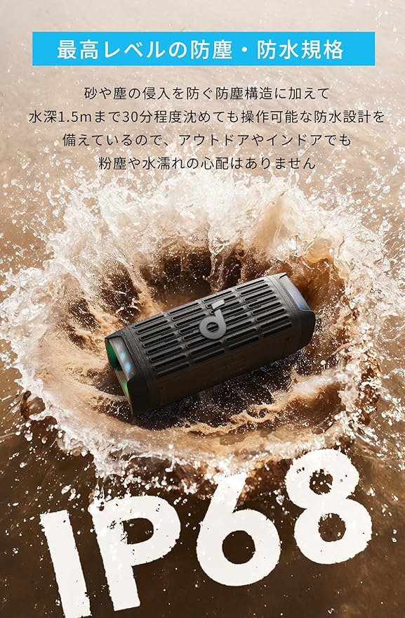 Anker Soundcore Boom 3i bluetooth スピーカー【耐海水性能 / 最大50W出力 / 16時間再生 / IP68防水規格 / BassUp 2.0/ 重低音】