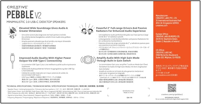 45 エレベータードライバー | Pebble V2は、Creative Pebbleと同じ45 高くなったドライバーを保持し、特別に角度を付け、オーディオを直接あなたに投影し、没入感のあるパーソナルリスニング体験を提供します。