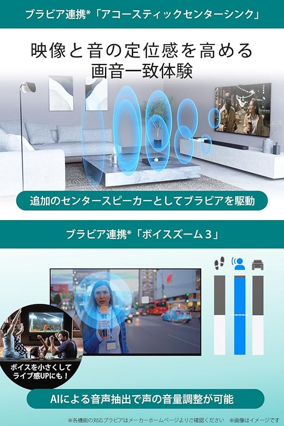 【パッケージ内容】▼ワイヤレスリモコン、HDMIケーブル(8K/4K 120対応、1.5m)、テレビセンタースピーカーモードケーブル(2m)、単4形乾電池 2、ACコード、壁掛け用ブラケット 2、壁掛けテンプレート