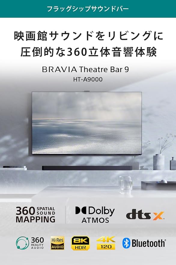 ソニー(SONY) サウンドバー HT-A9000 BRAVIA Theatre Bar9【Dolby Atmos・DTS:X対応/360立体音響/13スピーカーユニット搭載/テレビ用/HDMI 2.1ケーブル付属/eARC/Bluetooth対応】
